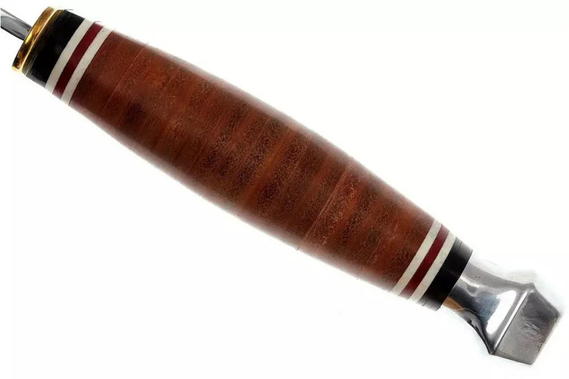 הידית המעוטרת בעור טבעי ובאלמנטים מנחושת מבטיחה לא רק אחיזה יציבה, אלא גם עיצוב יוקרתי ומרשים. עם קצה חלק וזווית השחזה של 20º, היא מצוינת לשימוש טקטי, או כמתנה לאדם שמעריך איכות ועיצוב.