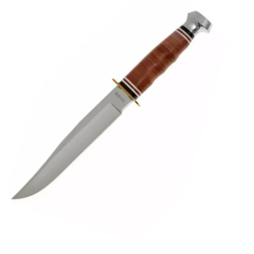 KA-BAR Bowie 1236 – סכין טקטית עם להב מלוטש עשוי 4116 נירוסטה, ידית עור מעוטרת עם אלמנטים מנחושת, קצה חלק וזווית שחזה של 20º. אידיאלית לשימוש טקטי, פריט אספנות מרהיב ומושלם כמתנה.