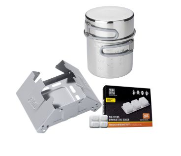 ערכת ESBIT מדליקה. כירה עם חבילת טבליות 14 גרם וסיר נירוסטה.