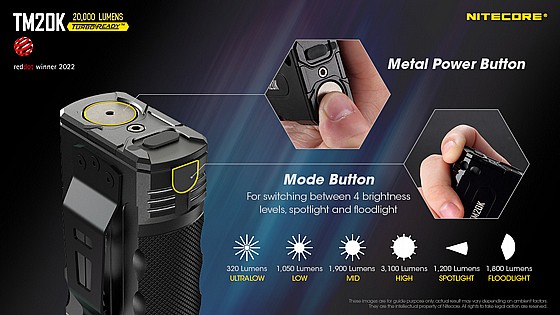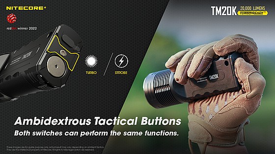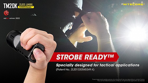 פנס הלם – כפתור הפעלה מידית בטורבו (20 אלף לומן) או STROBE – כפתור סינוור מיידי דור 2.0 Strobe בטכנולוגיה חדשנית מקורית עם תדירות אור רנדומאלי וסינוור חזק לשיתוק ראיית היריב להגנה עצמית והרתעה.