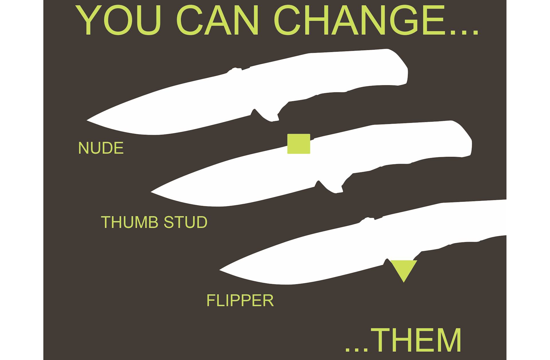 שלושה אופני פתיחה – עם Flipper, Thumb Stud או גרסה בסיסית