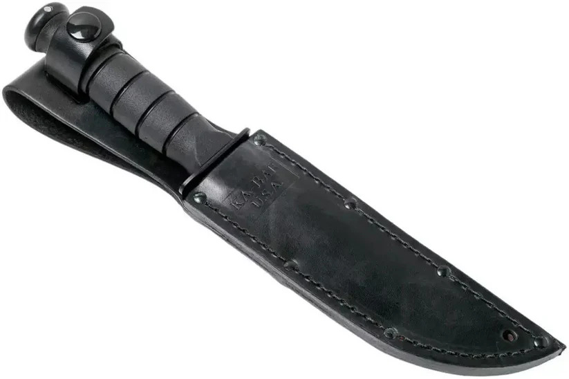 KA-BAR Short Tanto – סכין טקטית קומפקטית עם להב טנטו מפלדת פחמן, ציפוי שחור, ידית קרטון עם רכיבי מגן ונרתיק עור לנשיאה נוחה. תוצרת ארה"ב, מוכנה למשימות הקשות ביותר.